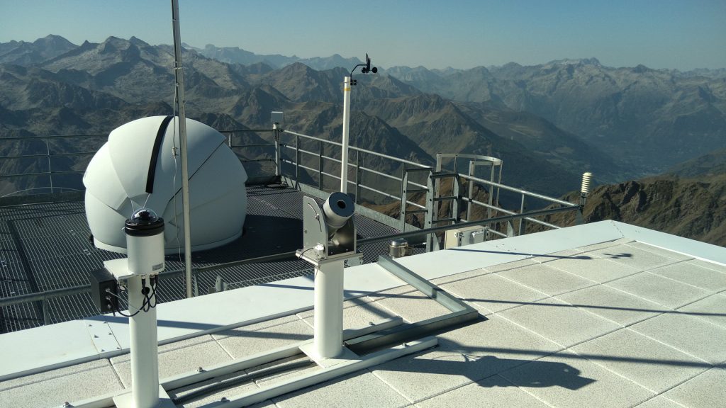 La lunette polaire (mesure du seeing) et la caméra ciel entier (allsky) installées au sommet de la plateforme environnementale du Pic du Midi.