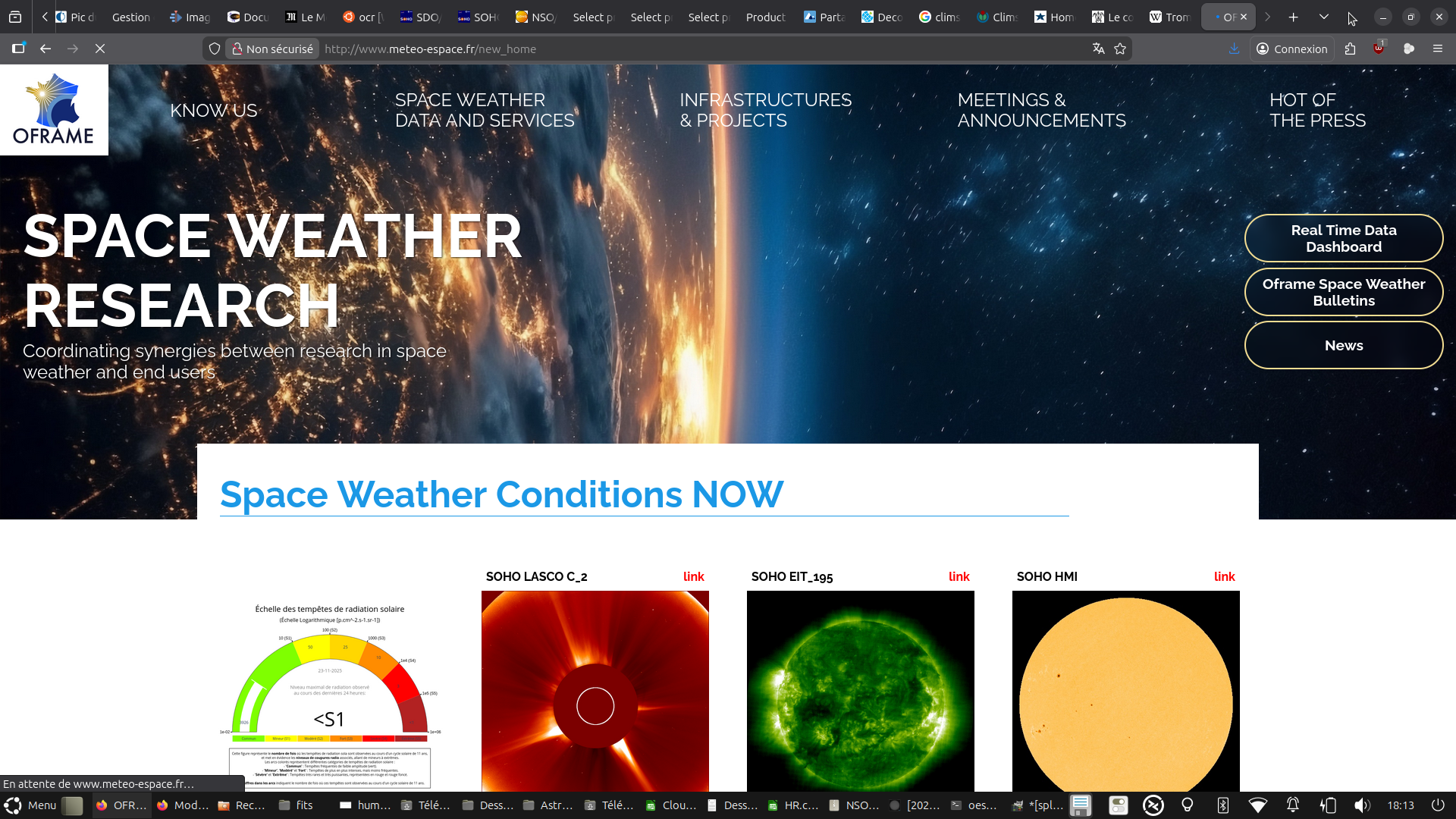 La météorologie de l’espace est la discipline qui étudie la chaîne de processus physiques en œuvre du Soleil à la Terre et qui prévoit les effets potentiels sur nos technologies. Au pic du Midi, les coronographes CLIMSO font de la surveillance solaire entre autres à ces fins.