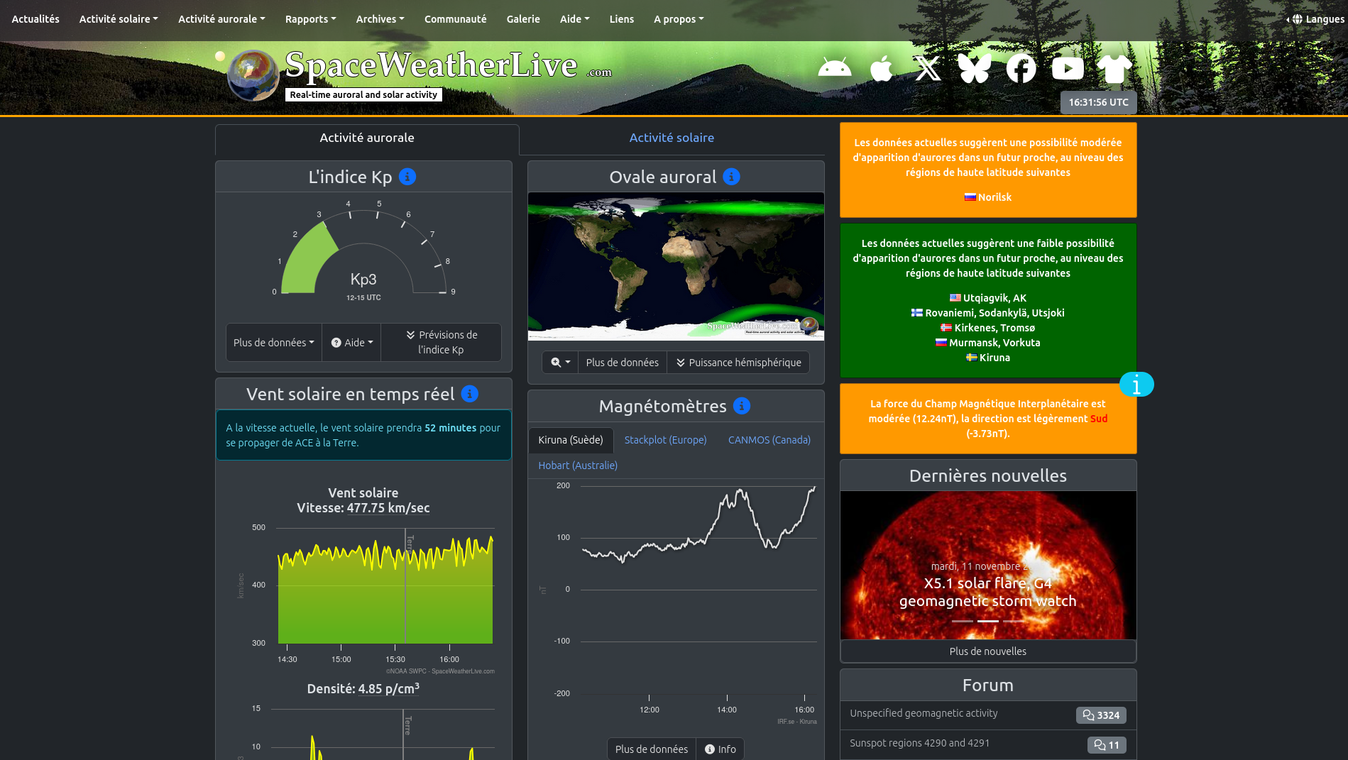 Ces phénomènes solaires énergétiques étant à la source des aurores polaires, l’activité aurorale a également augmenté.